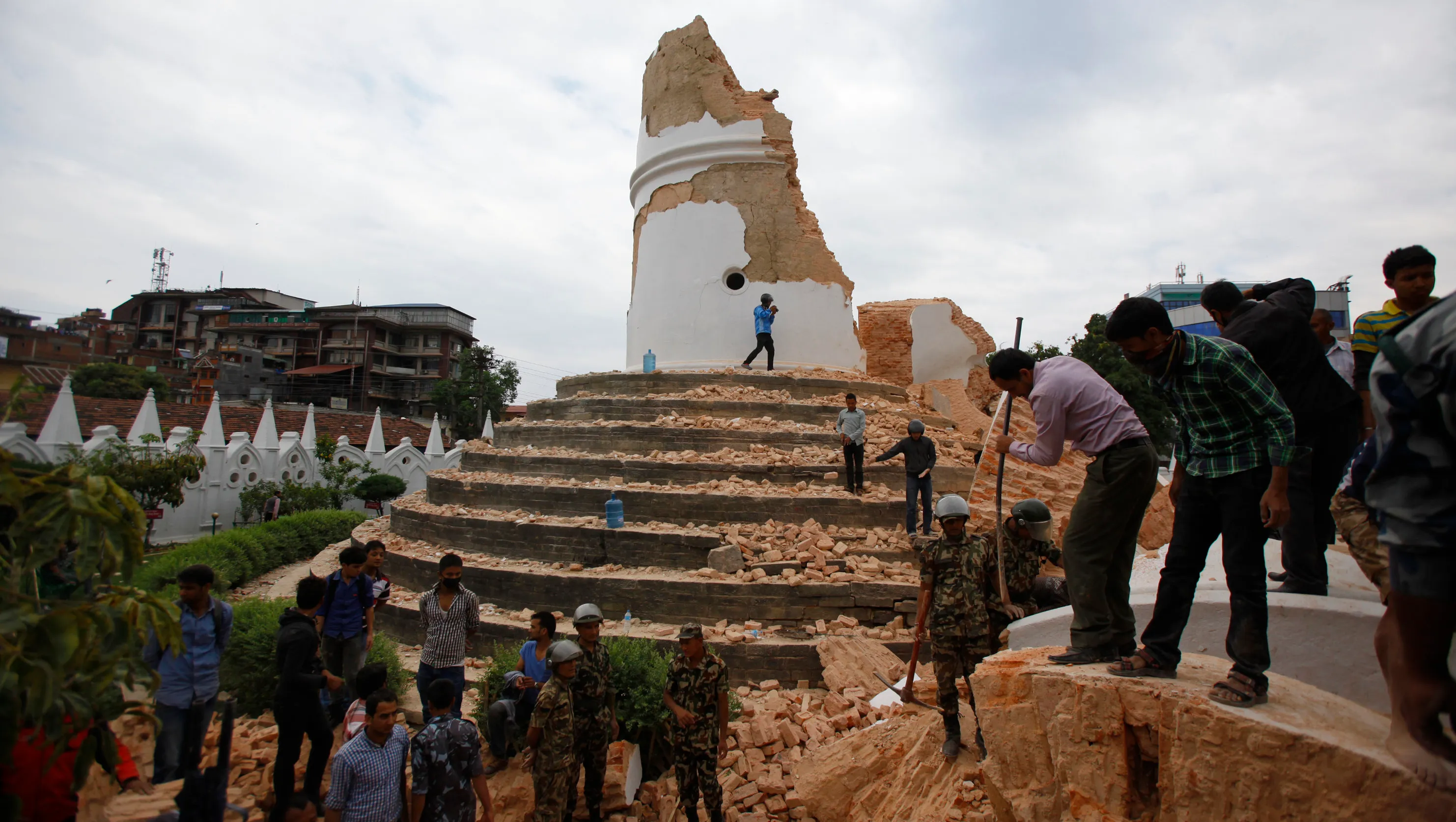 The 7.8 magnitude earthquake in 2015 completely destroyed Dharahara with only the base remaining. The Dharahara is said to have been broken into two parts before falling to the ground. This killed many people who were there to view the panoramic view from Dharahara. Many were injured and survived the tragedy.