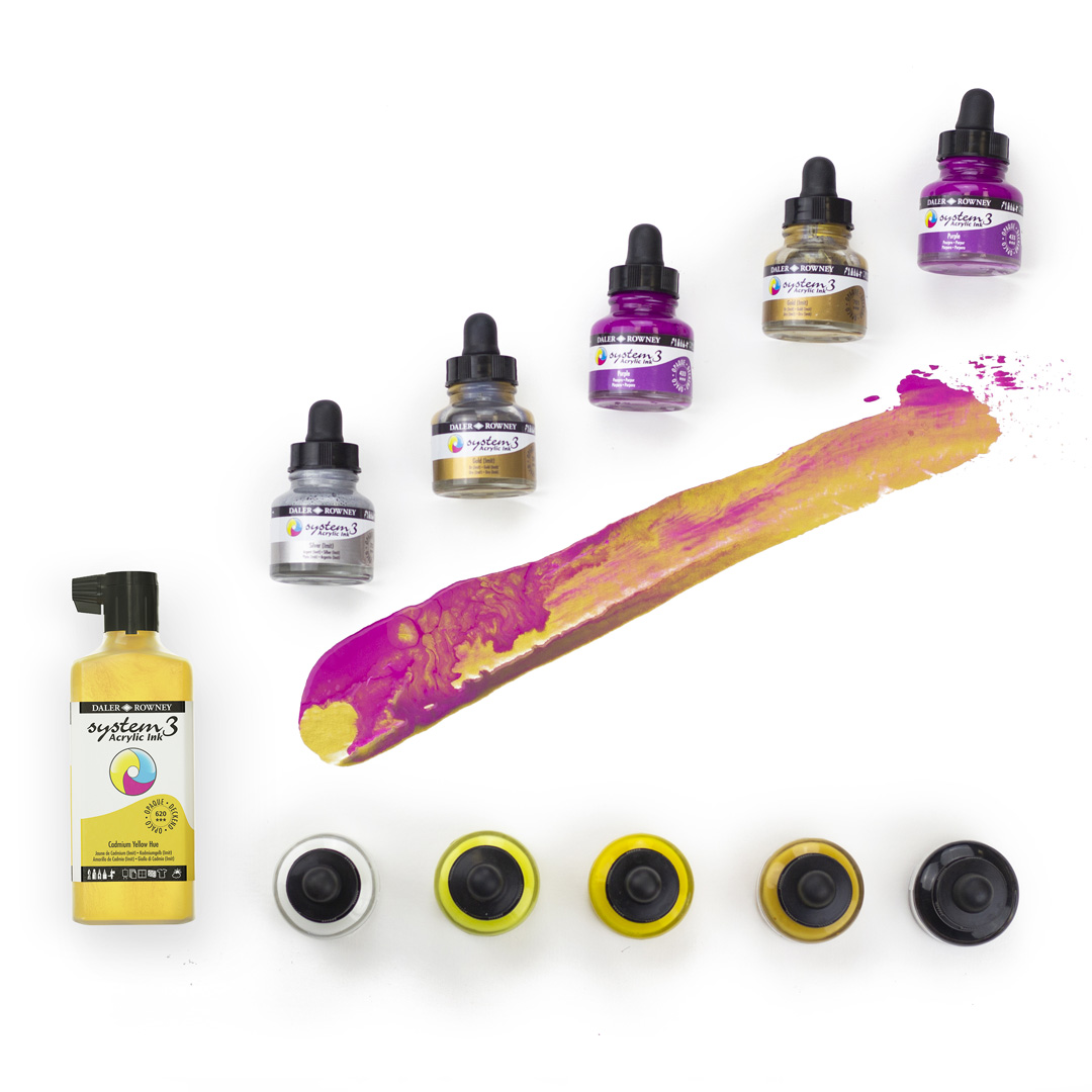 Acrylic Inks are simply a more fluid variant of acrylic paint. Brightly colored, expressive, lightfast, and flowing. Acrylic pigments are combined with a liquid acrylic resin emulsion to suspend and make the pigments flow more fluidly. Acrylic ink is ideal for layering color washes, adding detail with a fine brush, splatter brushing, and pen .