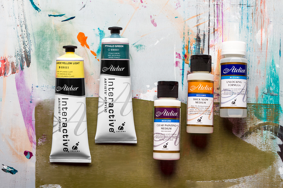 An artist-grade acrylic paint that dries quickly is called Interactive Acrylics Paints. Adding a few drops of the unlocking solution to the paint will also delay the interactive acrylics' drying period.